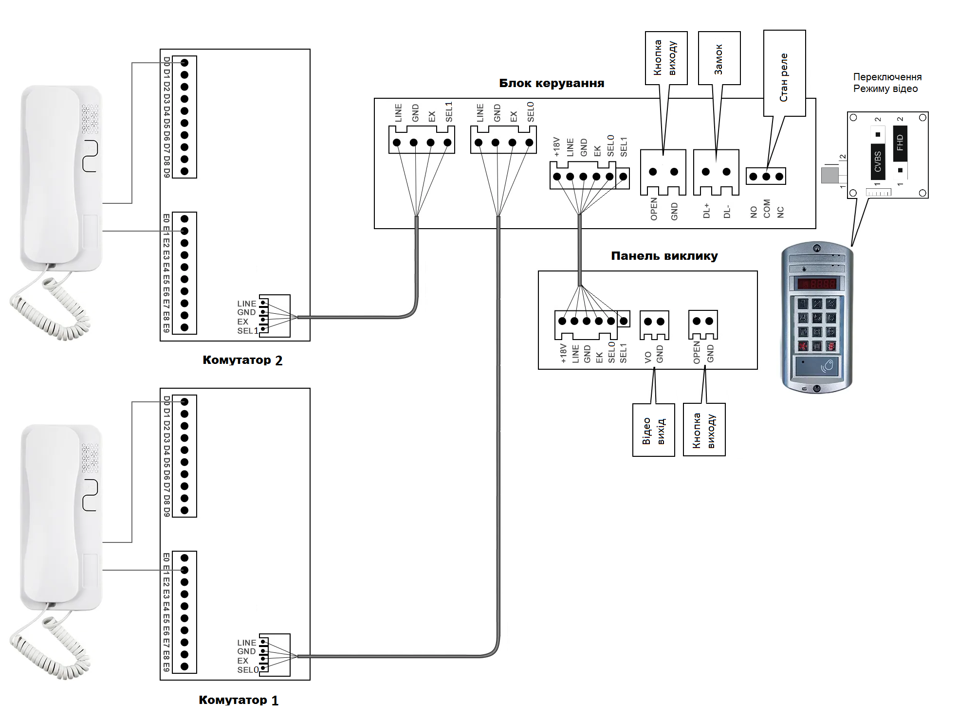 Призначений для підключення абонентських пристроїв до під’їзної лінії зв’язку домофонів