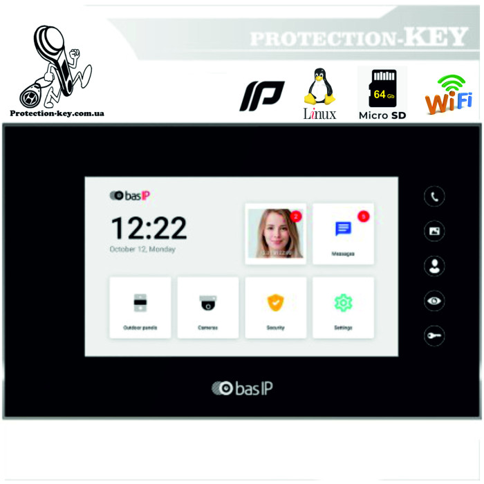ТЕХНІЧНІ ХАРАКТЕРИСТИКИТип пристрою: відеодомофон IP;Процесор: вбудований мікроконтролер;Операційна система: Linux;Мережа Ethernet: 10/100 Mbit;Мережа Wi-Fi: IEEE11 b/g/n;Мережевий протокол: TCP/IP;Дисплей: сенсорний, 7’...