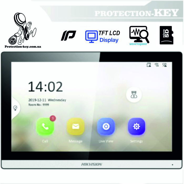 Новий інтерфейс користувача версії 2.0: зручний дизайн. 7-дюймовий кольоровий сенсорний екран із роздільною здатністю 1024×600. Стандартний PoE. Зберігає повідомлення та зображення на картці TF. Віддалене розблокування через клієнтське програмне забезпечення або мобільний додаток. Перегляд відео в реальному часі дверних станцій та повязаних камер